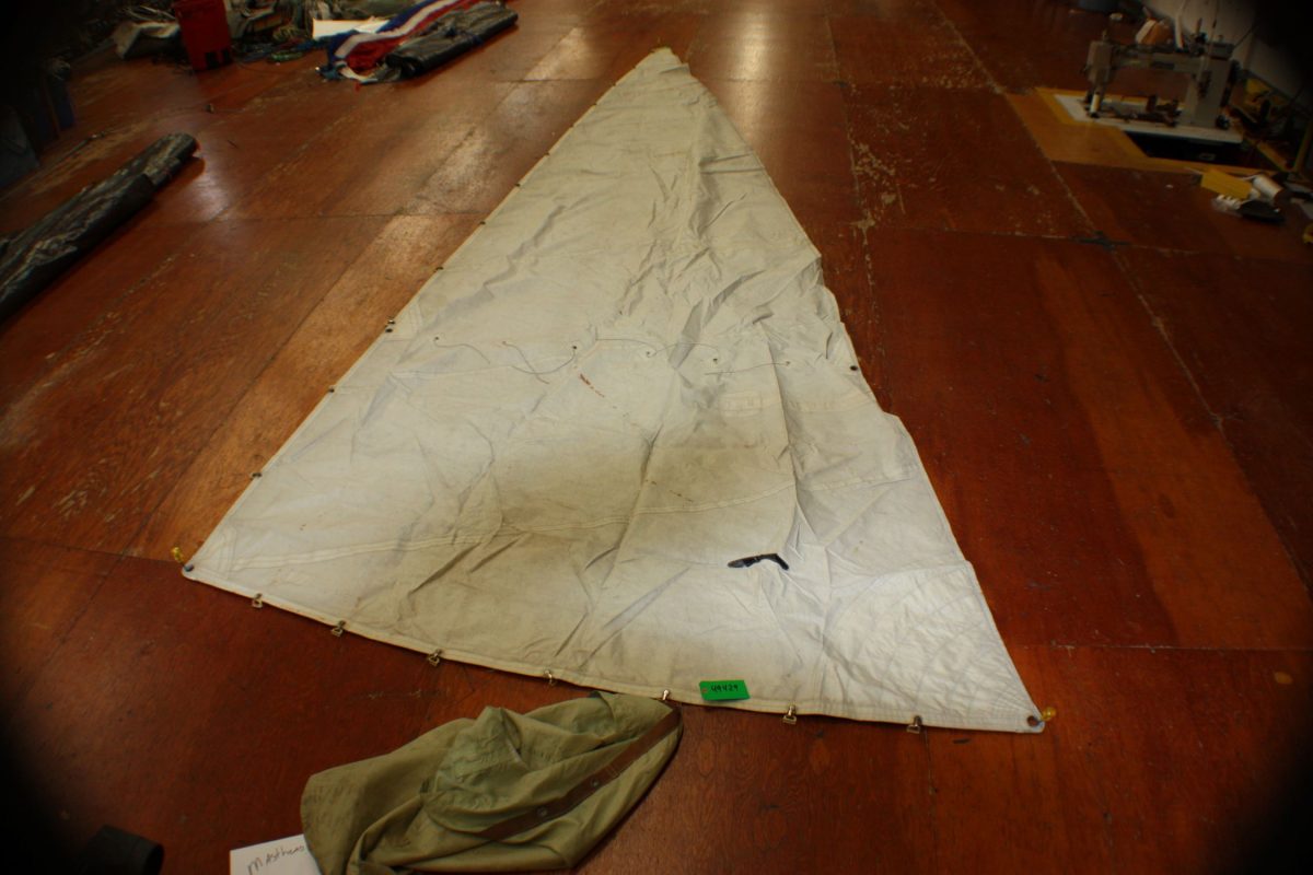 Used Sail Mainsail 49429 - Masthead Sailing Gear and Atlantic Sail Traders has 1000s of Used and New Sails in stock. Main Headsail and spinnaker all sizes.1 Reef with 4 standard leech battens. Mizzen. Battens not included. Heavy stains and light rust stains. Triple stitched and a light grey sail bag.